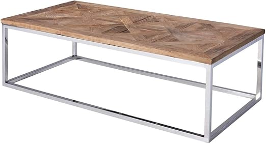 Cagusto Wohnzimmertisch Pure Aus Holz Massiv Und Alt Und Edelstahl Poliert Im Vintage Design Couchtisch Mit Einzigartiger Rustikaler Optik Durch Tischplatte Im Versailler Tafelparkett Style 140 X 70 X 45 Amazon De Kuche
