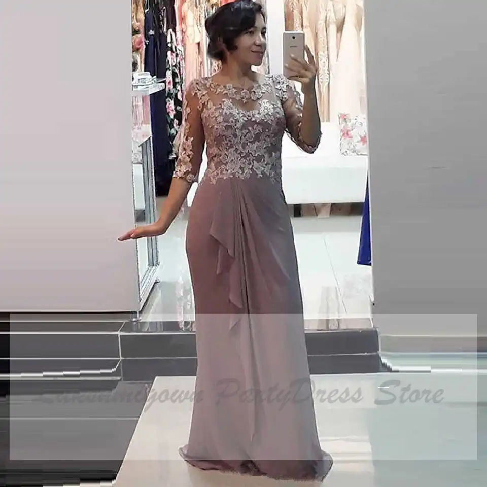 Vestido De Novia De La Madre De La Novia Para La Cena De Noche 2020 De Talla Grande De Gasa Vestido Largo De Fiesta De Noche Batas Con Mangas Vestidos Para La Madre