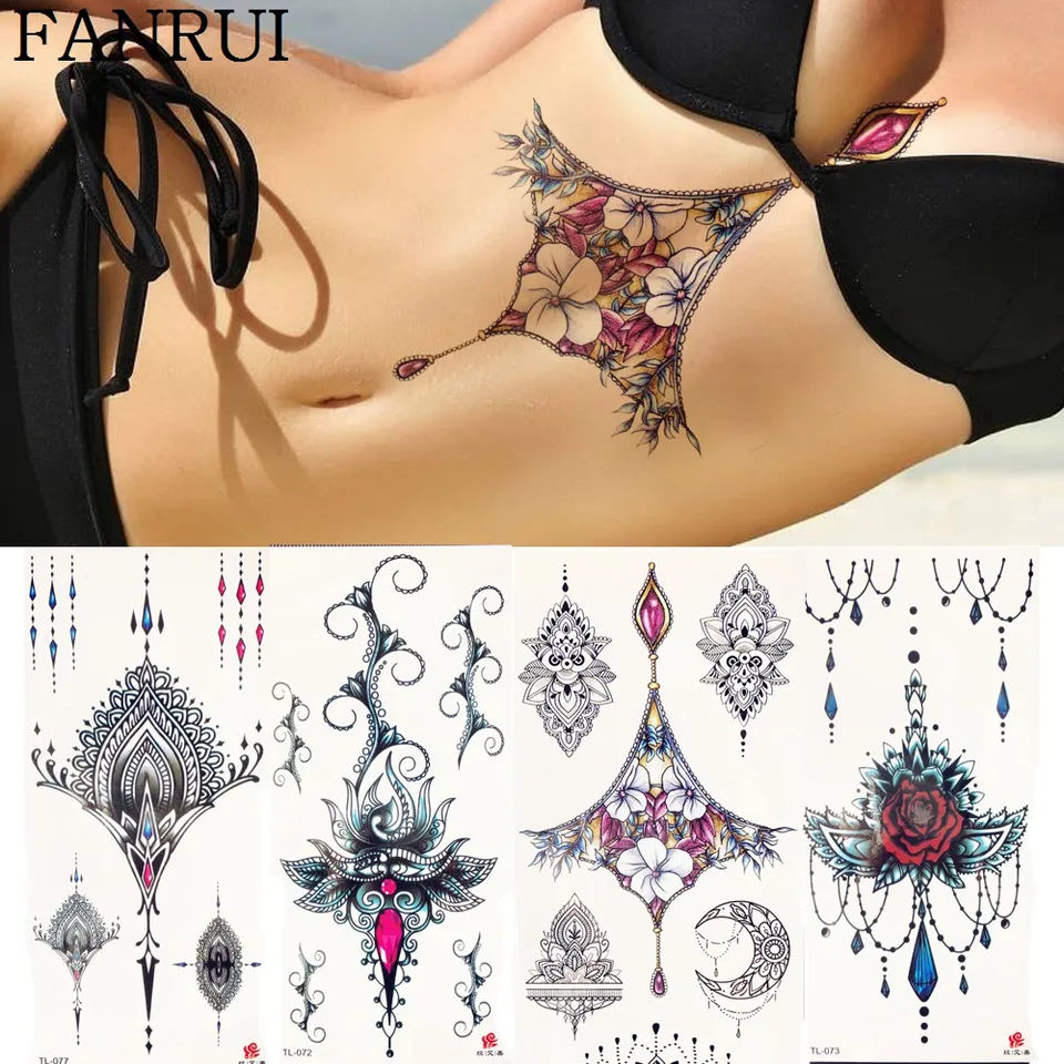 4 Unids Sternum Etiqueta Engomada Del Tatuaje Temporal Debajo Del Tatuaje Del Pecho Mujeres Sexy Tatoo Mehndi Pegatinas Bikini Chicas Tatuaje Mandala Collar De Encaje Tl142 Amazon Es Belleza